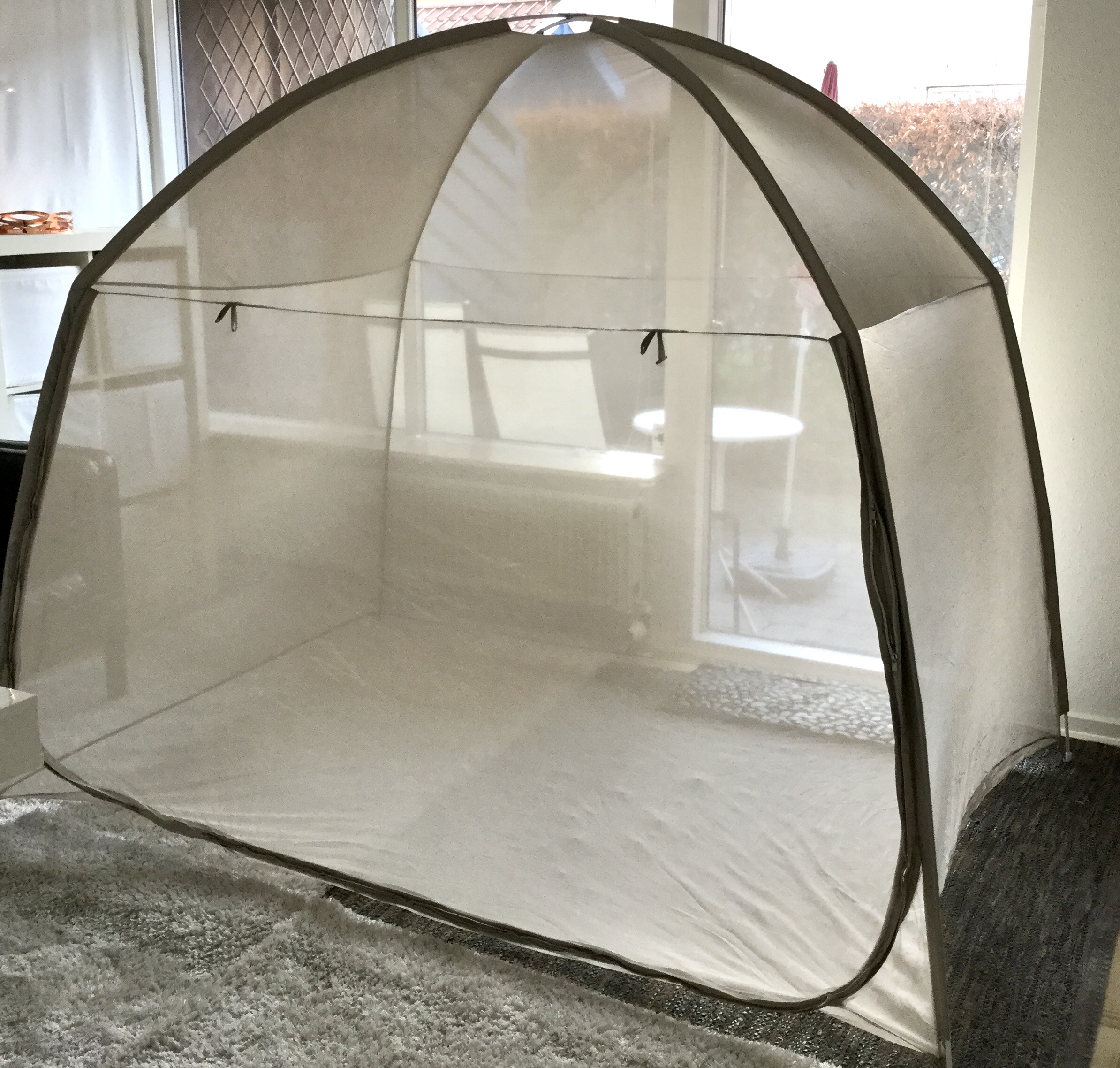Sov under den. Du skal blot pakke det rundt om dig som et faraday-tæppe. Du kan se gennem stoffet, og du kan trække vejret gennem stoffet.