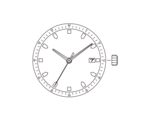 2. Turn the crown counter-clockwise to set the date. * If the date is set between the hours of around 9:00 PM and 1:00 AM, the date may not change the following day.